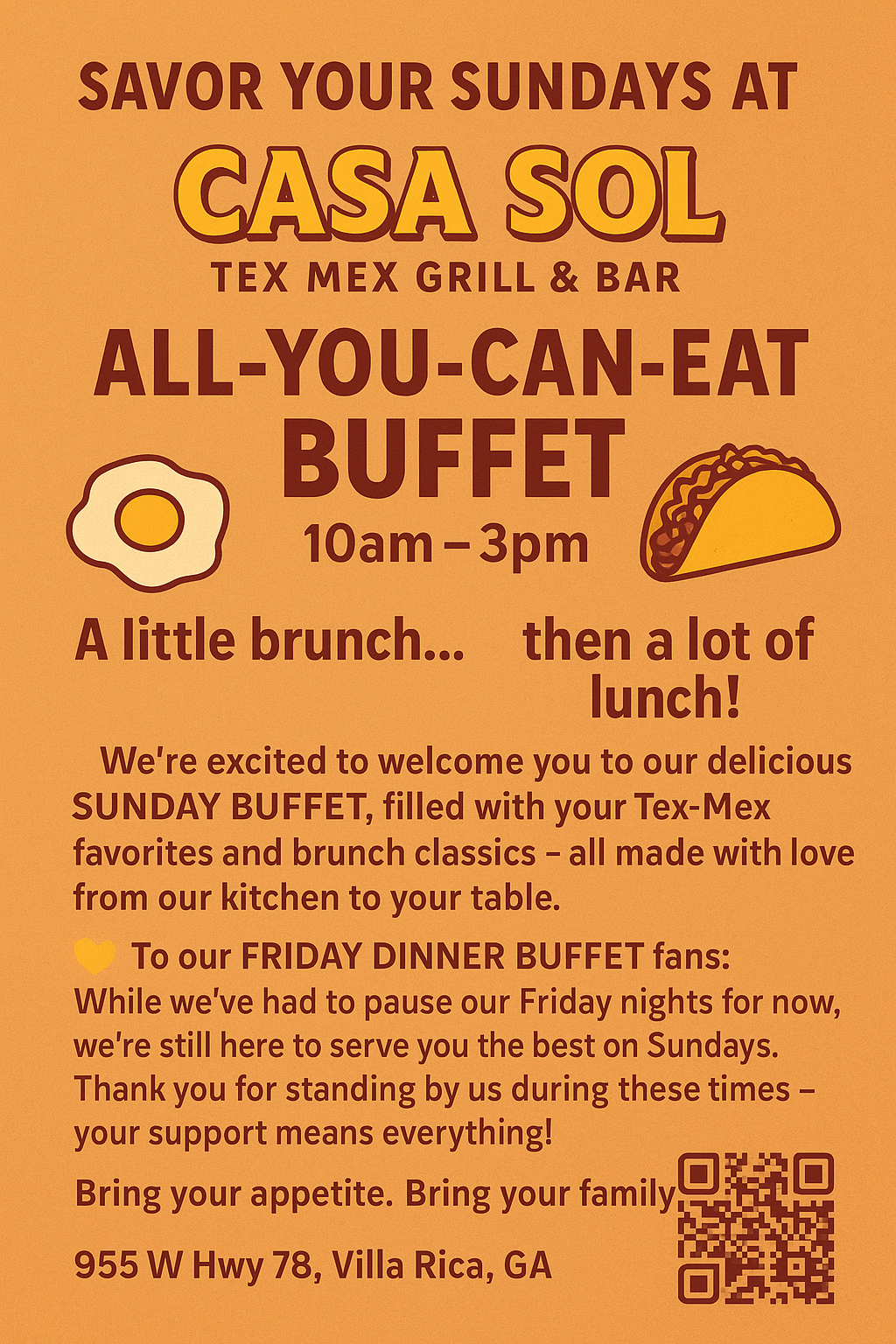 Pickup order online Order from DoorDash Order from UberEats Order from GrubHubGreat atmosphere and food. The steak, shrimp and chicken in my Casa Sol Burrito were tender, tasty and cooked to perfection. I've paid much more at other restaurants for food half as good. Well done! Everyone was pleasant and genuinely concerned that we had a great experience. Definitely worth a stop if you're in the area.